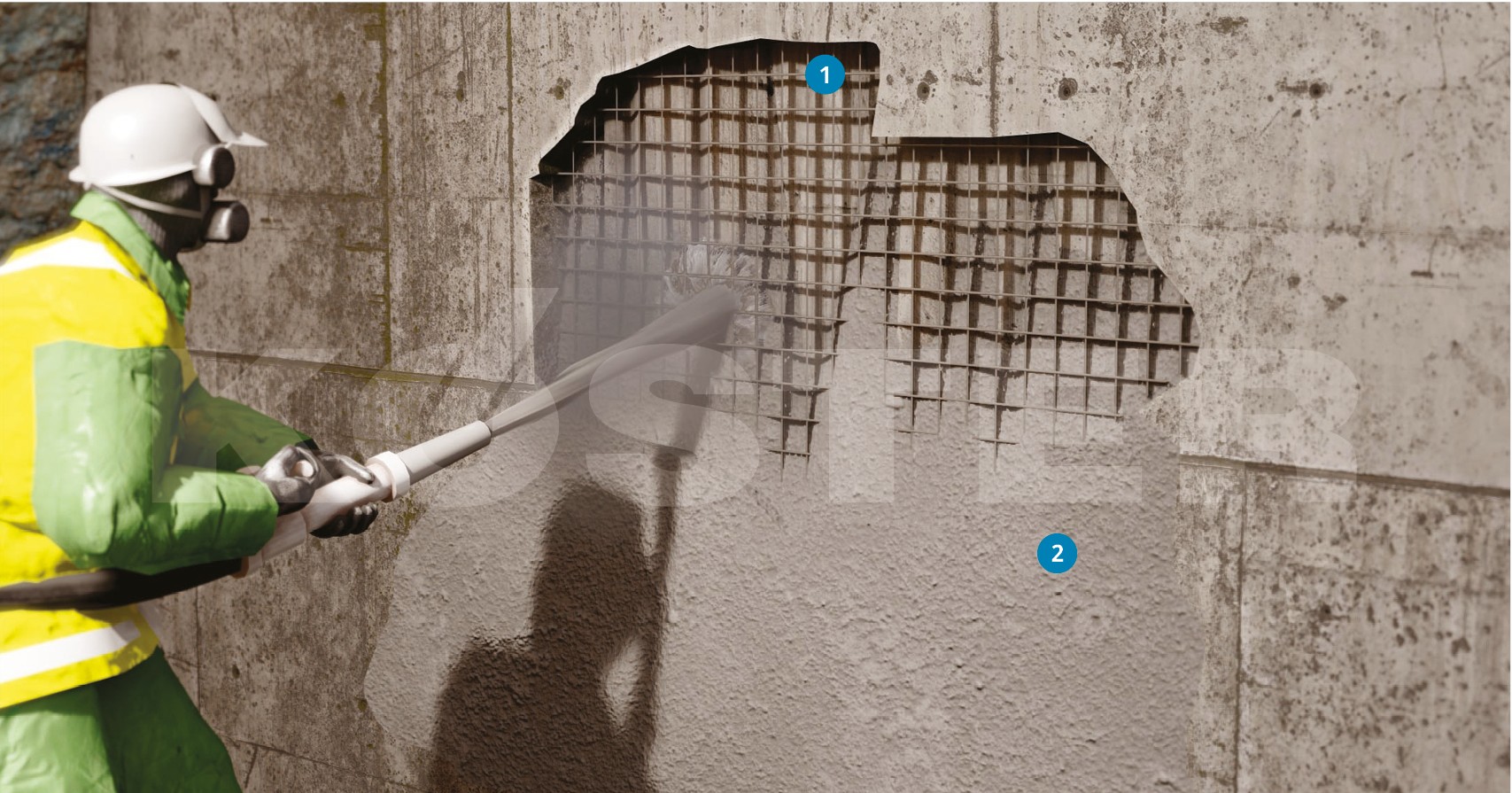 Besides requirements on durability, chemical and mechanical resistance, water-tightness, certifications, re-alkalization of the structural environment, protection and regaining coverage of the reinforcement, ease of application is a major influence on the choice of material. Thereby, the possibility of spray application may be a key factor in material selection. KÖSTER Repair Mortar NC is a fiber reinforced PCC mortar for large area concrete replacement and is sprayable with the proper equipment.