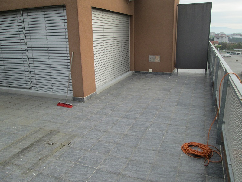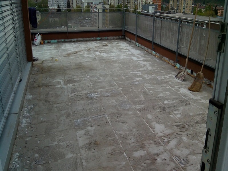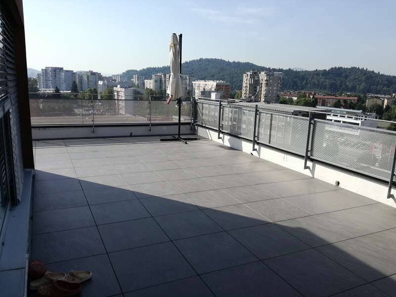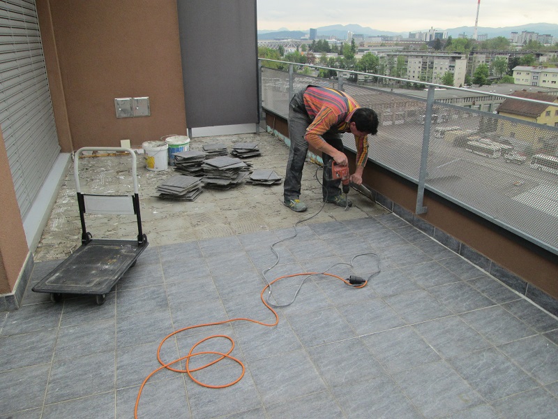 Sanirala se je terasa na večstanovanjski stavbi. Najprej je bilo potrebno odstraniti stare, že obstoječe keramične obloge. Podlago so očistili ter primerno pripravili in premazali z osnovnim premazom KÖSTER Polysil TG 500.