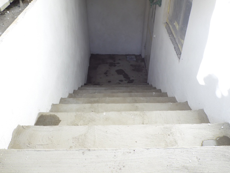I juli 2015, har vi forseglet og renovert en kjeller utenfor trappa i Oslo. Fjernet eksisterende puss på veggen og gamle gulvfliser på trapp. Murverk og trappa behandling mot saltutslag med spesiell primer og utarbeide en hulkil, etterpå utarbeide en negativ tetting med slemming NB1 Behandling den vegger først med grov puss etterpå med Saneringspuss hvit Sette nytt Opptrinnplater og inntrinnplater på trappa etterpå tilpasses sokkelplatter Sette gulvfliser med skråning på gulv Sette sålbenker med skråning på vindue