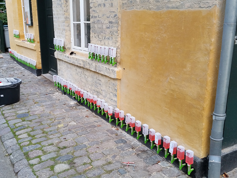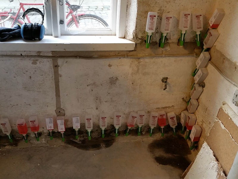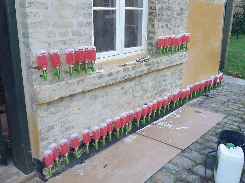 Renovation of old buildings against rising damp. The buildings of the district are listed buildings, which is why the visual appearance was unlikely to change as a result of the renovation.