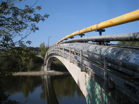 Concrete reprofiling and repair works, installation of a positive side waterproofing on top of the bridge.
