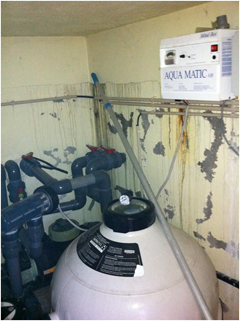 Aplicação de sistema de impermeabilização negativo nos pavimentos interiores por baixo da madeira com Polysil TG 500 e NB1 Grey. Impermeabilização negativa da casa das máquinas de piscine, enterrada com Polysil TG 500 e NB1 Grey. Aplicação de sistema de impermeabilização positivo com regularização de substrato utilizando Repair Mortar e KBE Film Liquído.