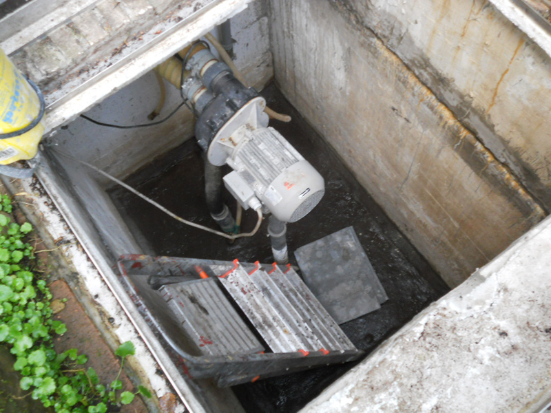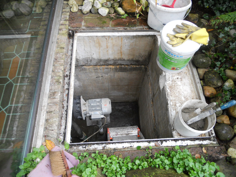 Negativabdichtung eines Punpenschachts mit KÖSTER NB 1 Grau, KÖSTER SB-Haftemulsion, KÖSTER Blitzpulver und KÖSTER Sperrmörtel fix quellfähig.