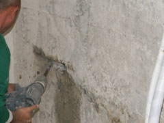 After stopping the leakages the entire wall is waterproofed with the mineral waterproofing slurry KÖSTER NB 1 Grey