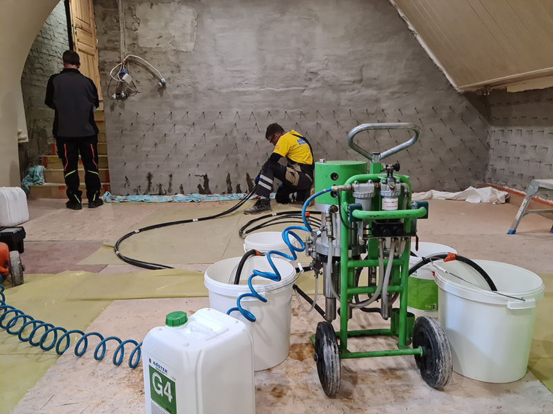 Meeting Room renovation. Waterproofing from the negative side, structural injection, coating insulation, renovation plaster system.