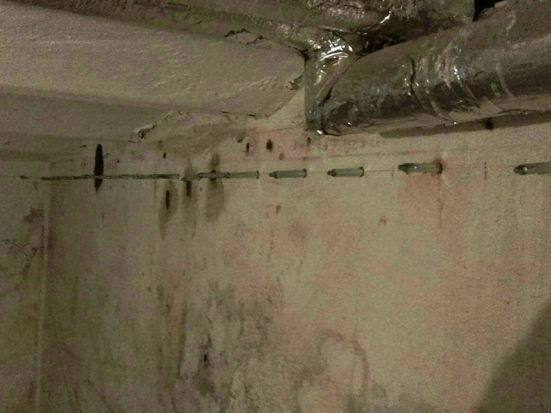 Die hohe Feuchtigkeit im Keller, ist in das obere Stockwerk kapillar aufgestiegen. Außerdem war der Sockel des Hauses beschädigt. Dadurch kam es zu Schimmelbildung im Haus. Es wurde eine Horizontal- und Vertikalsperre (Sockelabdichtung) eingebaut.