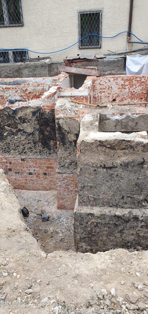 Wykonano hydroizolację ścian fundamentowych przy użyciu masy KOSTER NB4000, wykonano także iniekcję ścian preparatem KOSTER Mautrol 2K w celu odtworzenia izolacji poziomej oraz system tynków renowacyjnych KOSTER Sanierputz.