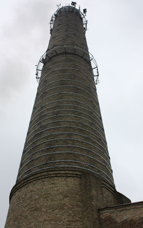 Reprofiling and protection of an old brick built chimney against thermal and corrosive attacks with a mineral system.