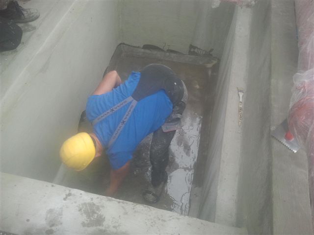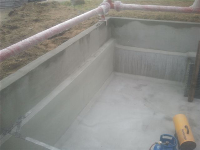 Warstwa wierzchnia (druga) EM-VS na ścianach misy gotowa, gruntowanie dna LF-BM