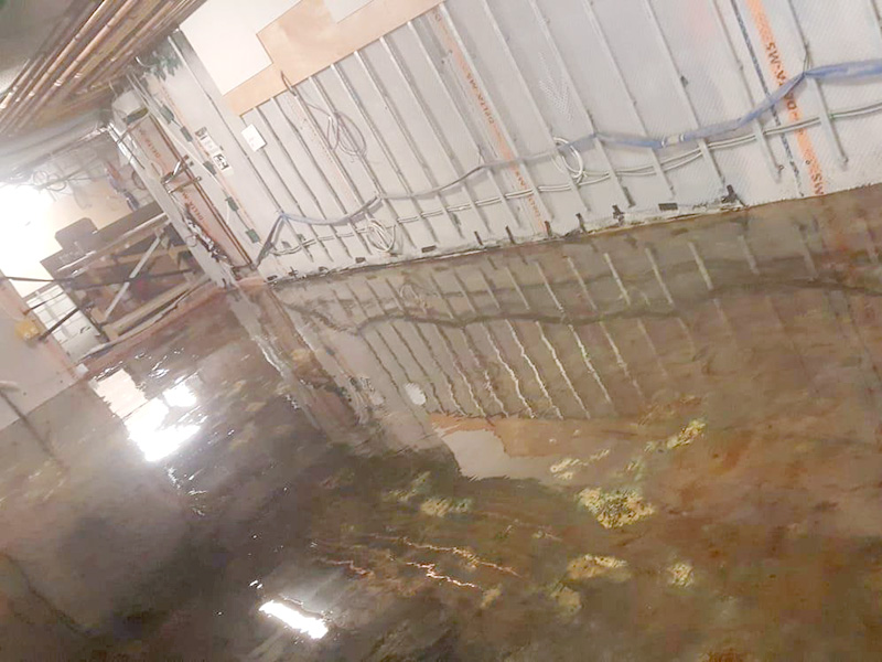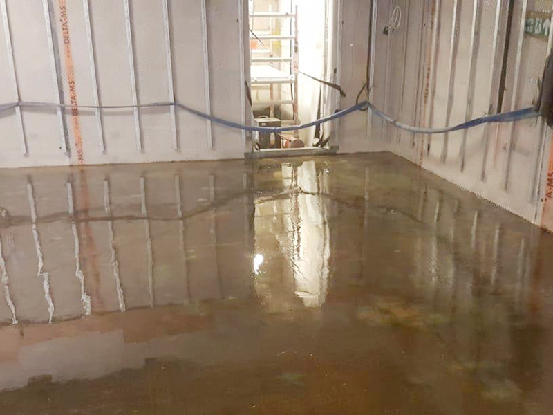 Several water bearing cracks were treated with Koster 2 IN 1 before being structurally repaired with Koster LF-BM and sand.
