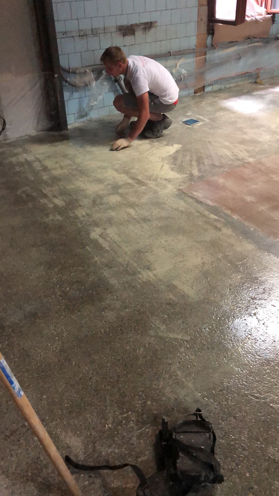 Repair of the floor in the KOLIBA kitchen restaurant in Bratislava. The original floor was made of ceramic tiles and concrete slabs. The floor is grinded. The cracks in the substrate were coated with KÖSTER KB Pox IN epoxy. The entire surface was covered with the UC 100 + UC 300 system with anti-skid treatment of silica sand.