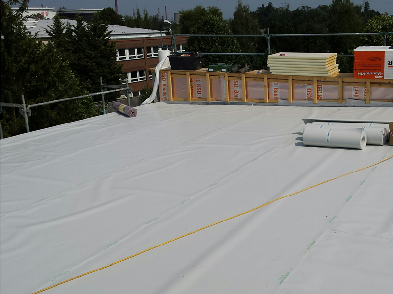 Deutschland, Köln, Neubau Bürogebäude Coeur Cologne, Dachabdichtung mit TPO-Dachbahnen