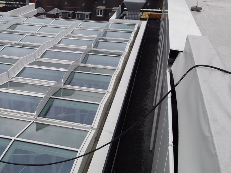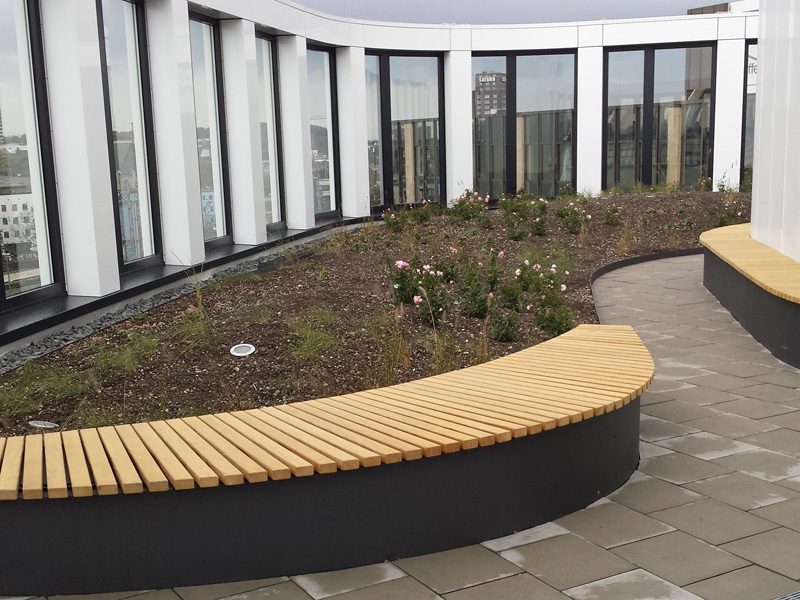 Insgesamt mehr als 4.000 Quadratmeter Flachdachfläche mit Sky Garden (extensives Gründach) und begehbarer Dachterrasse waren zwischen dem 3. und 7. Stockwerk abzudichten.
