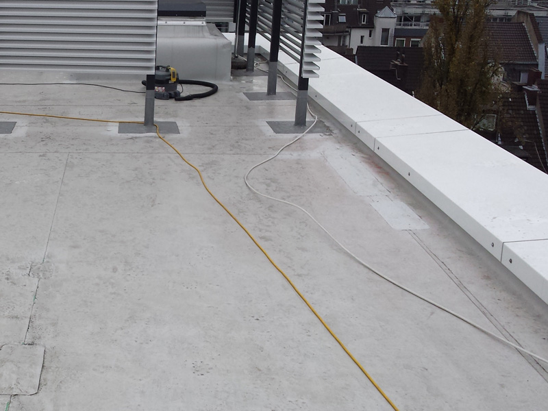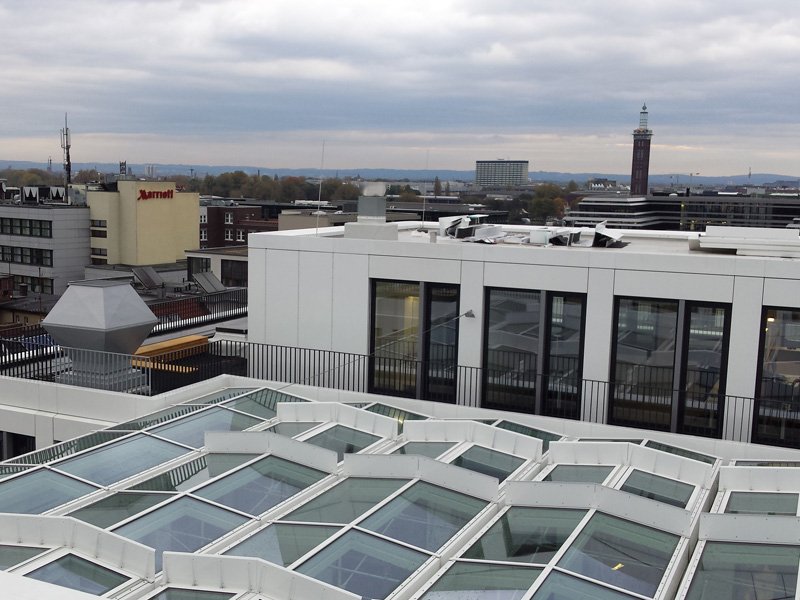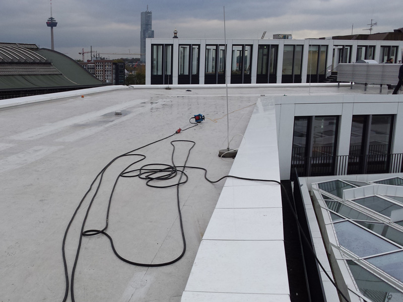 Dachabdichtung mit TPO-Dachbahnen, Neubau Bürogebäude Coeur Cologne, Köln, Deutschland