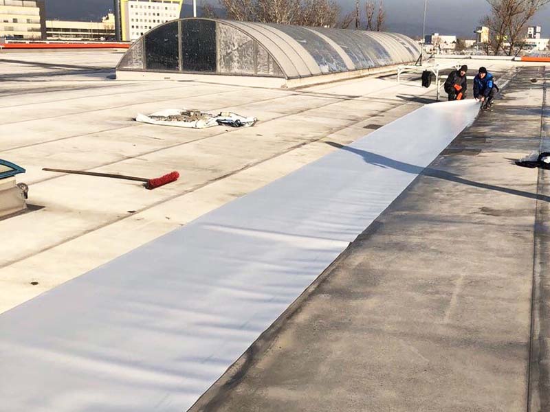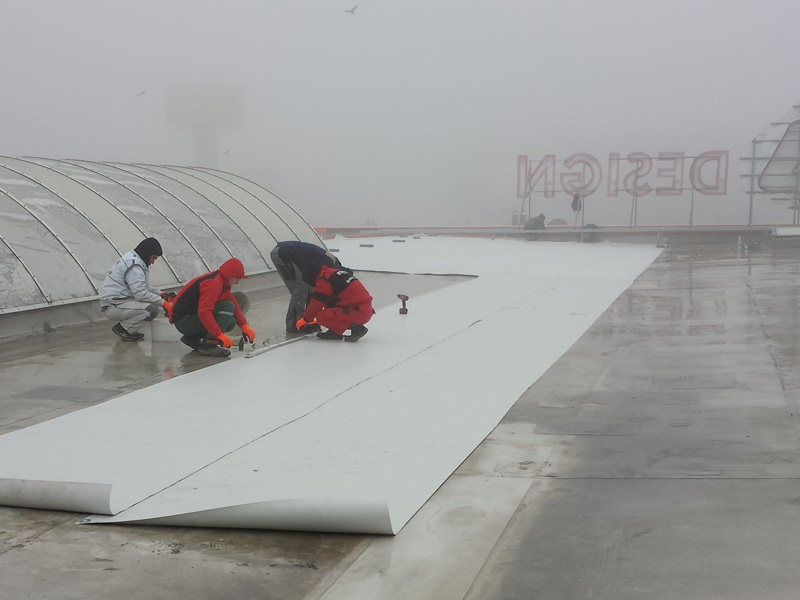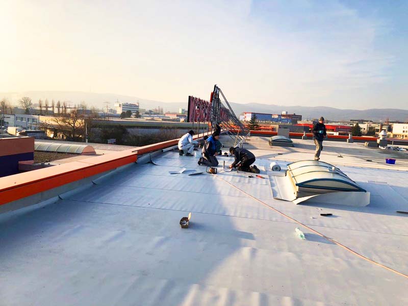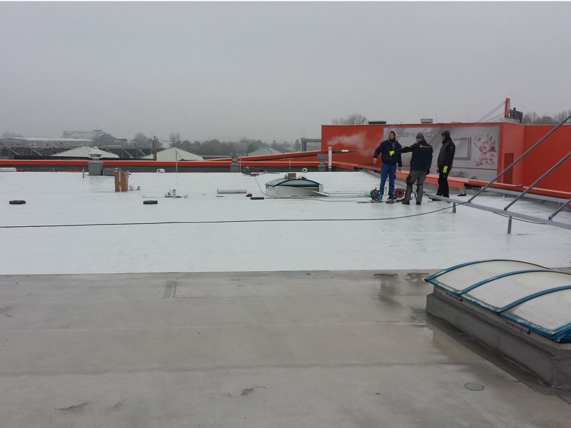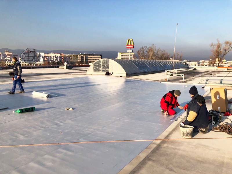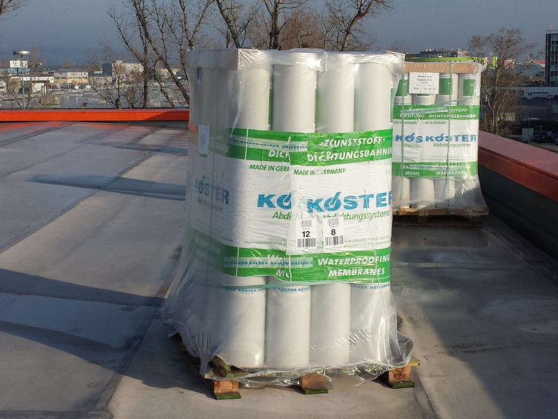 Крыша торгового центра с мебелью в Братиславе была покрыта ПВХ-пленкой (около 17 лет). Пленка ПВХ демонстрировала значительные нарушения дефекации по всей поверхности здания. Пленку KÖSTER TPO 1.5 помещали на пленку из ПВХ, которая механически крепилась к потолочной конструкции. Крепление фольги осуществлялось с помощью анкерных профилей профиля KÖSTER. Затем поля были запечатаны герметиком PUR.