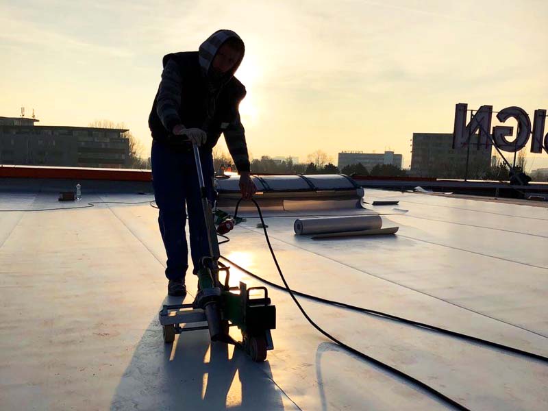 The roof of the commercial center with furniture in Bratislava was covered with PVC foil (about 17 years old). The PVC membrane exhibited significant defecation. The KÖSTER TPO 1.5 foil was placed on the PVC foil, which was anchored mechanically to the ceiling structure. The sheet was welded. The anchoring of the foil was done using the KÖSTER Conection Profile anchors. Subsequently, the margins were sealed with PUR sealant.