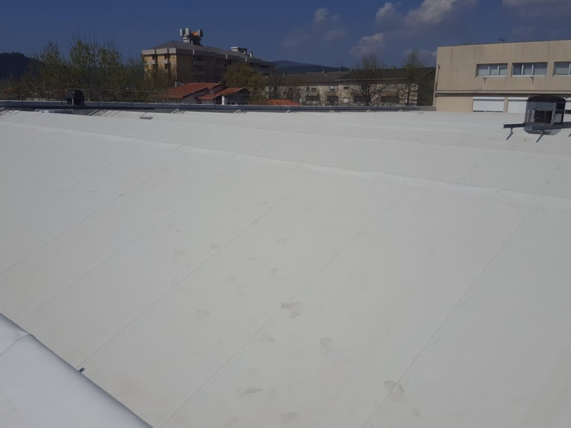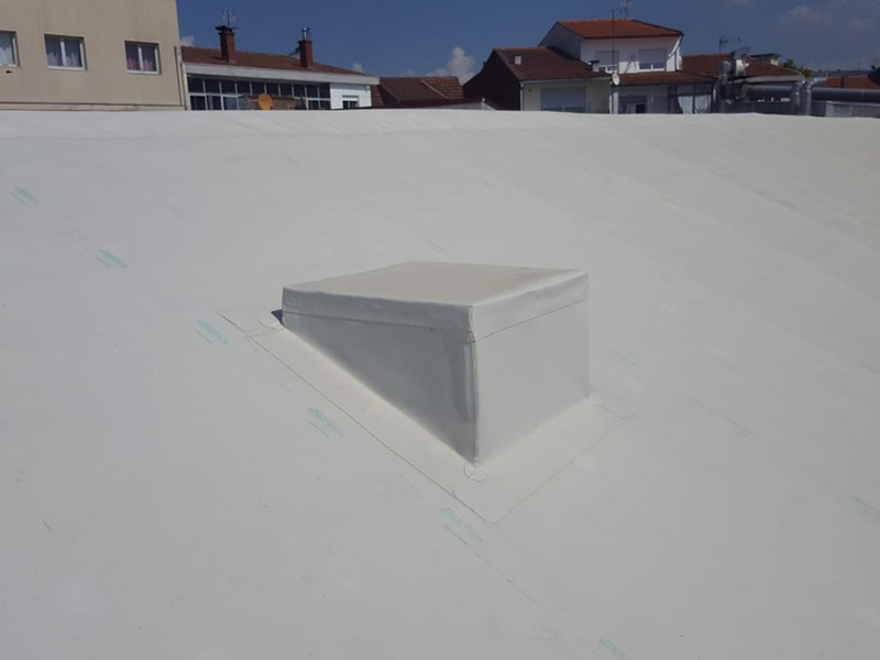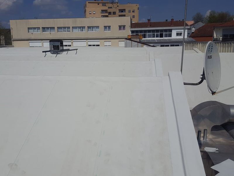 Waterproofing of 4.000 m² roof with KÖSTER TPO Roofing Membranes. The membranes were applied by mechanical fastening over PIR insulation boards.