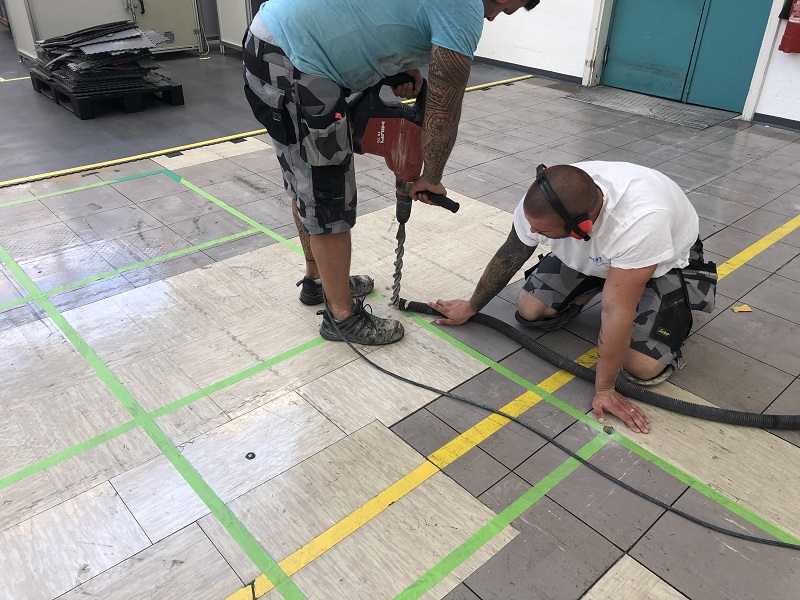 Izvedla se je stabilizacija in utrditev tal pod talno ploščo v industrijskem objektu.