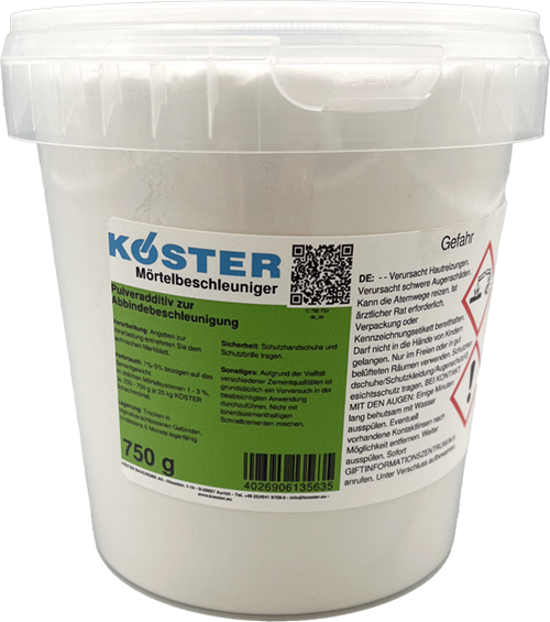 Accelerator for Portland cement based mortars. Accelerates the hardening of mortars, for example for work in low temperatures.